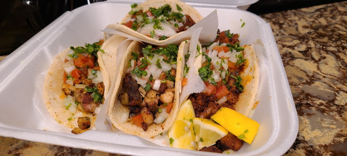 Enjoyed all the food! The carnitas were exceptional, very tender with a little char and no bits of gristle or chunks of fat. The asada and pastor were perfectly seasoned but it was a little odd that they use ground beef and ground pork for these. The flavor was so good I didn’t care. Fresh soft tortillas and nice pico de gallo. Burrito was great as well. They give you two types of red salsa, both very tasty but not very spicy. Tip: upon request, they gave me a little mouth burning habanero sauce which really brought everything together. Be warned that a tiny amount goes a long way!